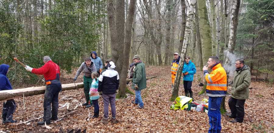 Unsere fleißige Truppe im Wald beim Holen des diesjärhigen Maibaums