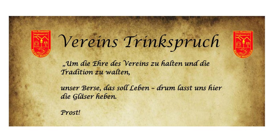 Unser traditioneller Vereins Trinkspruch wird in gemeinsamer Runde beim Anstossen gesprochen - dieser wird von den Vorsitzenden des Vereins angestimmt